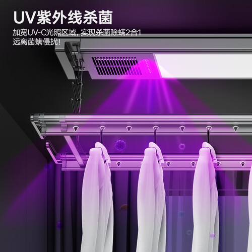 金贵夫人嵌入式电动晾衣架,集智能语音、快速升降、暖风烘干、紫外线杀菌等多种功能为一体,专心打造便捷晾晒生活体验。