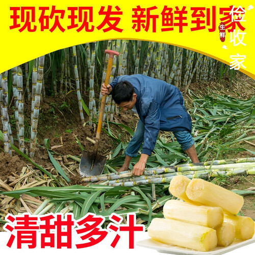 农家自种甘蔗,现砍现发去头去尾,保障粗细均匀,中段果肉细腻,汁水丰盈新鲜。果肉皮薄松脆纤维少,爽口多汁更甜蜜。