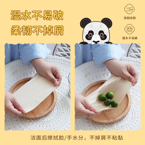 三层加厚,纸张柔韧性强,湿水不易破。具有无尘无屑的特点,可放心擦拭口鼻,不会感到敏感。