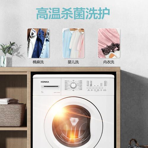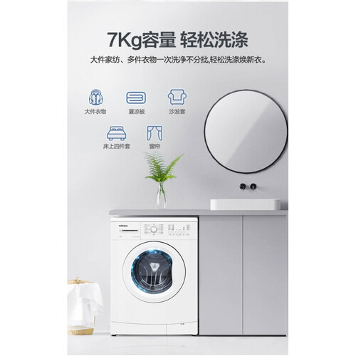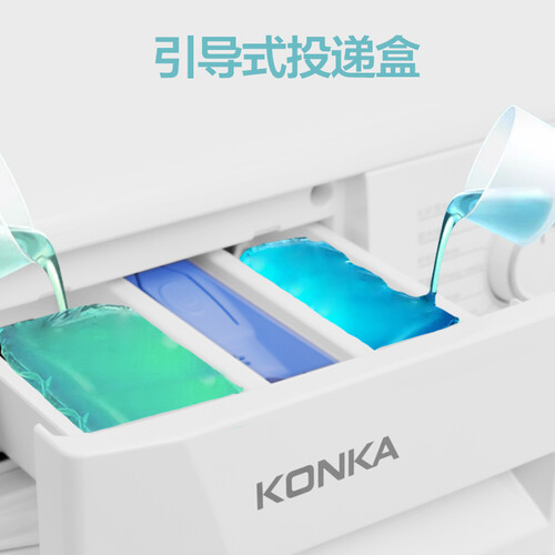 特设了三个投递盒,可以分类投放洗涤剂,便于充分进行溶解。7kg大容量,多件衣物一次洗净。