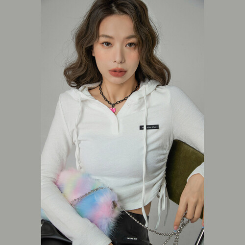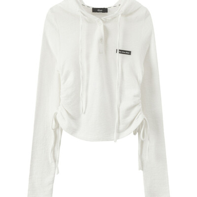 采用抽绳式设计,让衣服更有设计感,简约而不失时尚。微弹面料,舒适没有束缚,上身更显身材。纯白配色,经典百搭,方便出门。