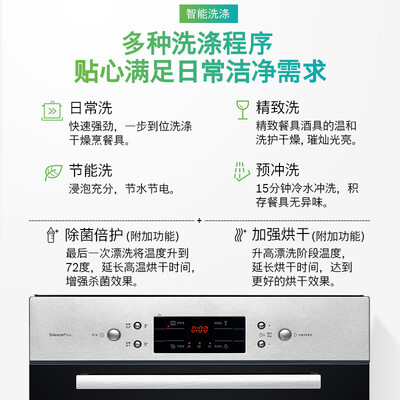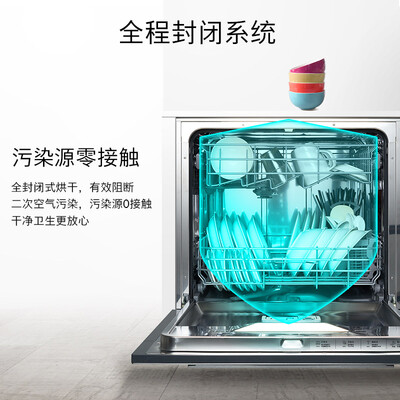 72°高温洗涤设计,深层去除碗筷污渍,还能去除碗筷细菌,让家人安心入口。搭载全程封闭系统,确保内腔干净无污染。