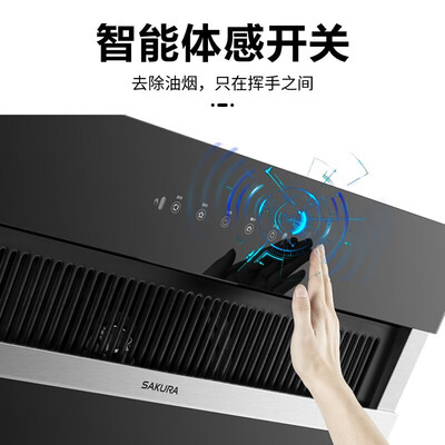 设有延时关机功能,厨房余烟进一步消除,保持空气清新。搭载挥手智控,挥手可开关烟机,风量大小切换更简单。