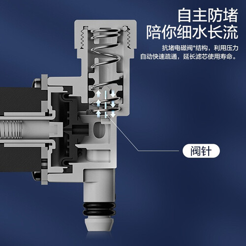 采用抗堵电磁阀结构设计,利用压力自动快速疏通,延长滤芯寿命。6升大容量,轻松满足全家人饮水需求。