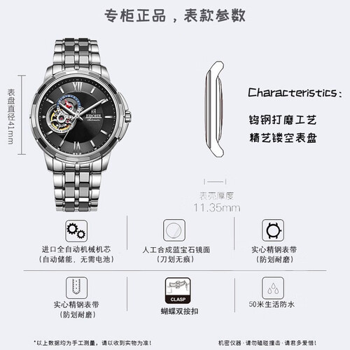 半钨钢表圈表带,经久耐用不易磨损,粗心大意人群佩戴不再小心翼翼。人工蓝宝石玻璃表镜,散发晶莹剔透光泽。