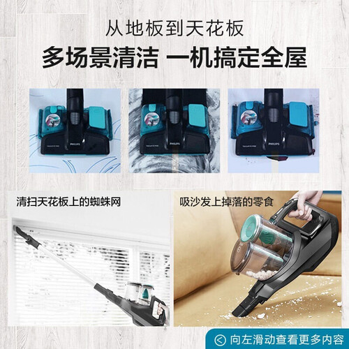 前置LED灯照明,光线柔和不刺,暗处灰尘清晰可见。机身纤薄不厚重,轻松搞定床底灰尘,减少残留。