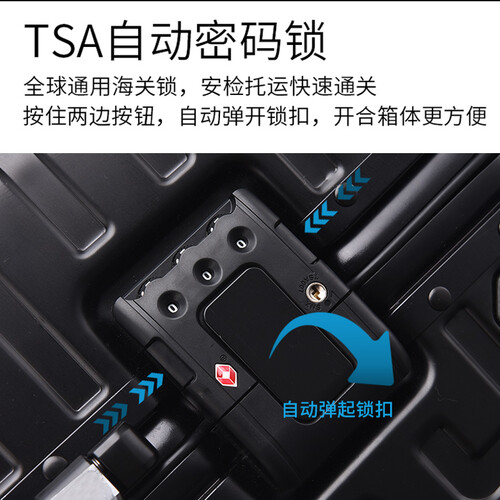 箱体采用铝镁合金打造,具有卓越的承重能力,坚固耐磨使用更随性。配备高弹双排万向轮,减震效果好,减少拖行颠簸感。