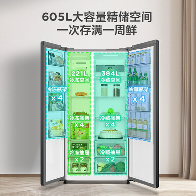 大容量空间,一次就能囤很多,大而不乱空间满足。双变频能效,节能同时还很省电,安静不吵闹居家才会舒服。
