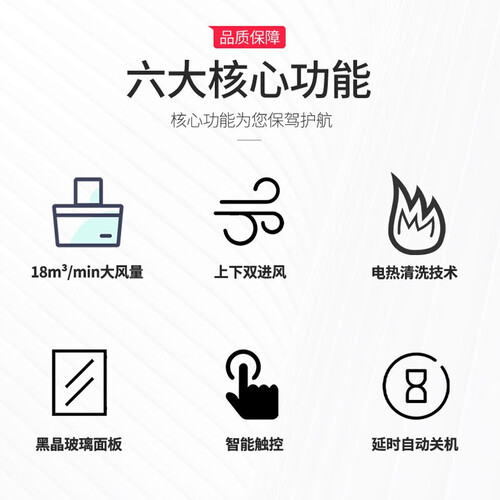 黑晶玻璃面板,触感细腻光滑易清洁,安全防爆裂。延时自动关机,可以轻松扫除厨余油烟,让厨房环境更清新,没有油烟味。