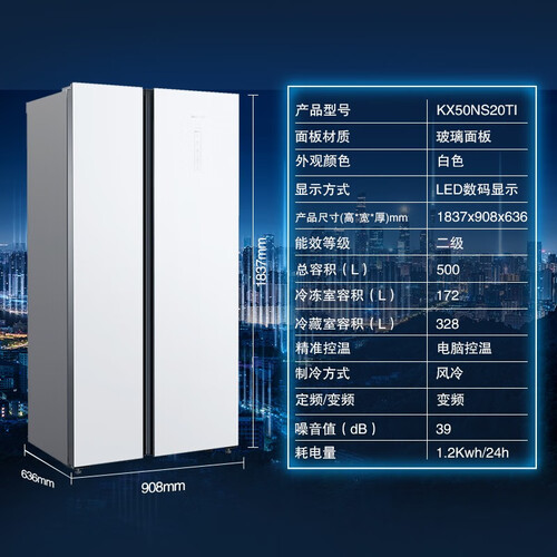 拥有500升海量储鲜空间,一次囤货可满足长时间饮食需求,花样美味随心享。应用风冷雨霜技术,不需要手动除霜,更加方便。