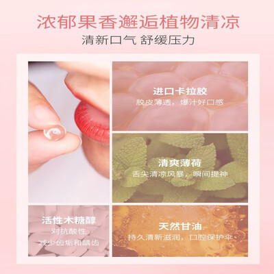 胶皮薄透入口速溶,带来冰爽白桃风味,吐出的每一口都是清新,让你轻松应对多种社交场合。