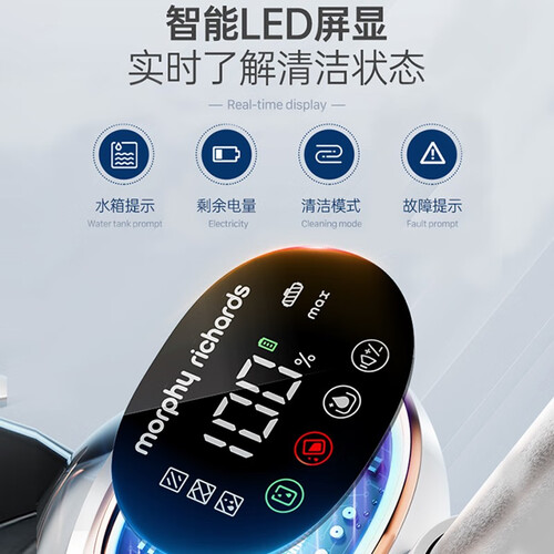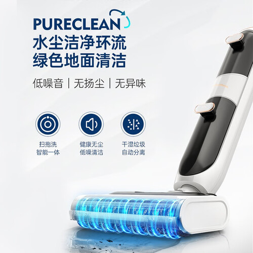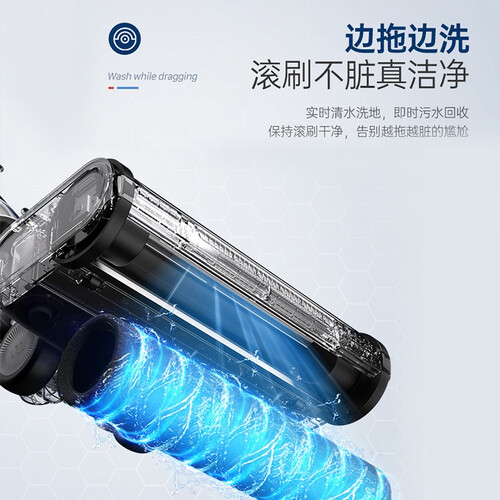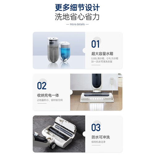充电收纳一键自动清洁,有效保护双手干净,防止脏污。吸洗拖可同时进行,防止地面越拖越脏的问题,全能清洁。