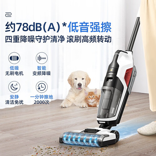 高频转速无刷马达,降低噪音,性能稳持久耐用。而大容量水箱无需频繁清洁,可以实现边吸边拖,自带清洁。