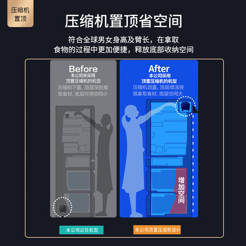内置优质的变频压缩机设计,动力更强劲,运行时噪音较低,安静不打扰,经久耐用。风冷无霜科技,制冷更均匀。