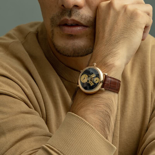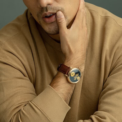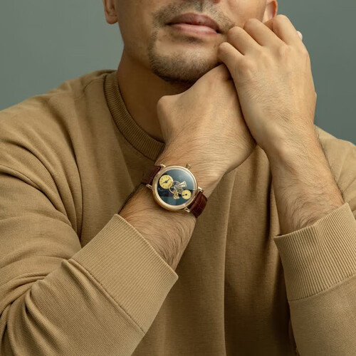 中置天轮沿袭我国自古推崇中轴对称之美,有强迫症人群理想选择。历经586道打磨工序机芯,坚固耐用无惧近观。