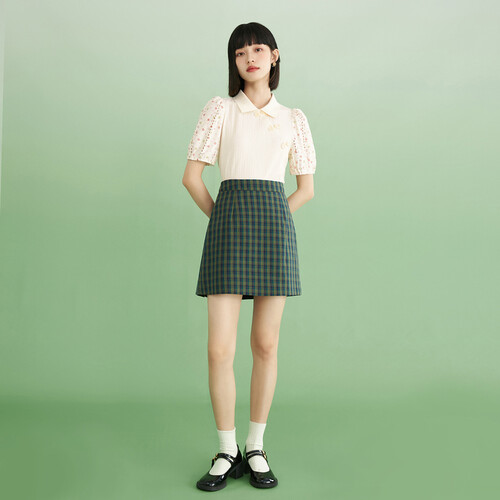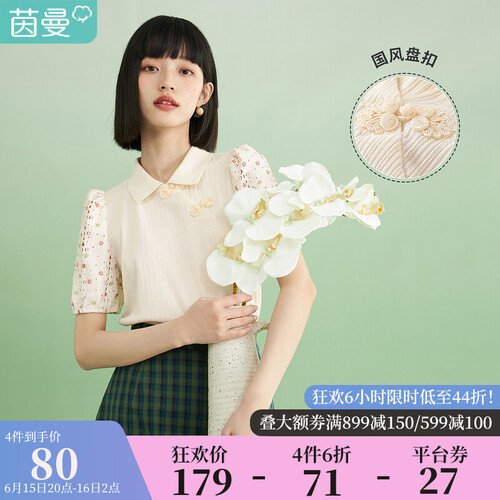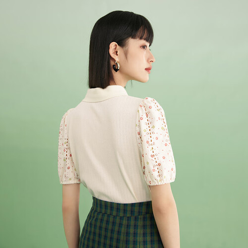 茵曼 泡泡袖短款t恤