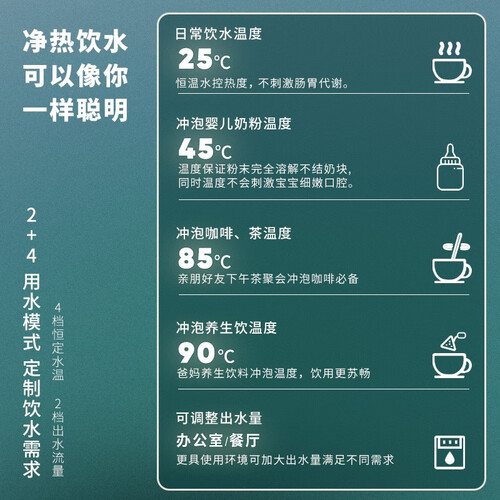 三合一复合反渗透滤芯,有效净化水质的同时降低滤芯成本,致力成为每个家庭的持家小能手。滤芯自清洁,拒绝陈水,只喝新鲜水。