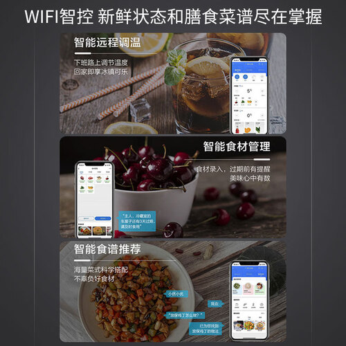 搭载双变频设备,平稳运行且精细化控制温度,使得食材持久水润。选用高品质的抗菌面板,星光纹理彰显时尚格调。