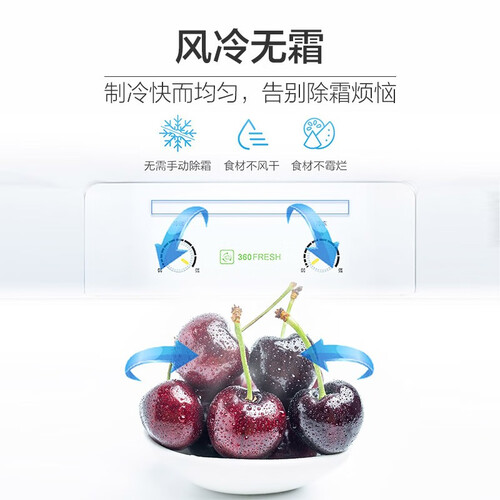 内置360fresh天然除菌净味,使存储空间更加洁净清新,放心囤藏百鲜。结合风冷无霜技术,制冷均匀,避免直吹风干。