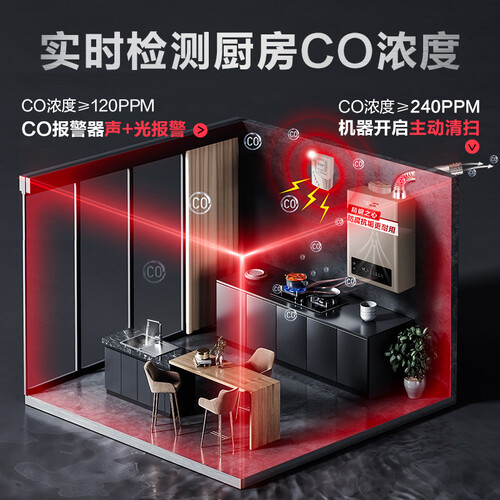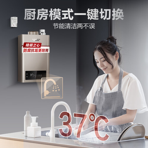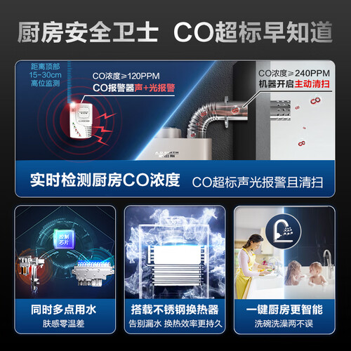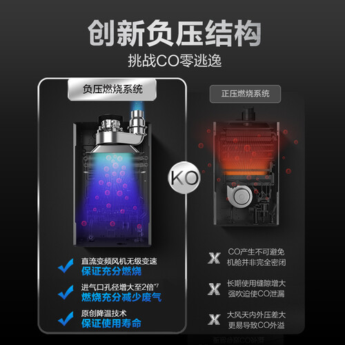 一键智能查询功能,只需要一键即可查询使用状态。搭载了负压式的直流变频风机,即使高层住宅,热水依旧持续供应。