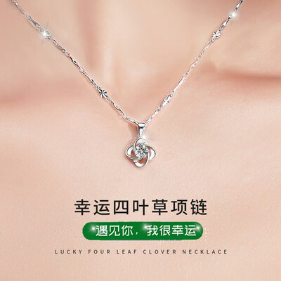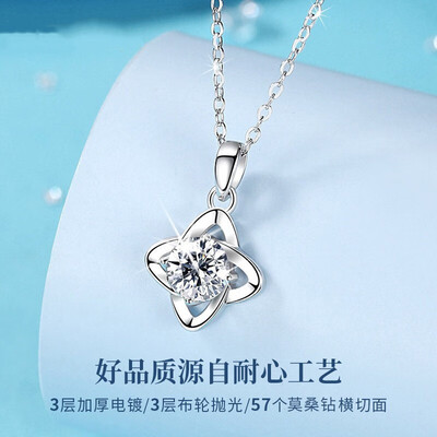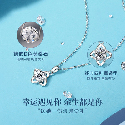 四叶草花型吊坠,莫桑钻石点缀,灵动闪耀,绽放出浪漫迷人光彩。简约四叶草项链,时尚经典,寓意好运和幸福,很适合送女朋友。