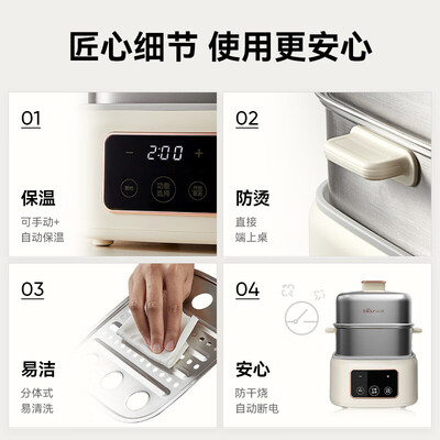 搭载高温蒸汽除菌系统的煮蛋器,深层洁净去除病菌,守护家人健康。分体意式设计,便于日常冲洗,避免二次污染。