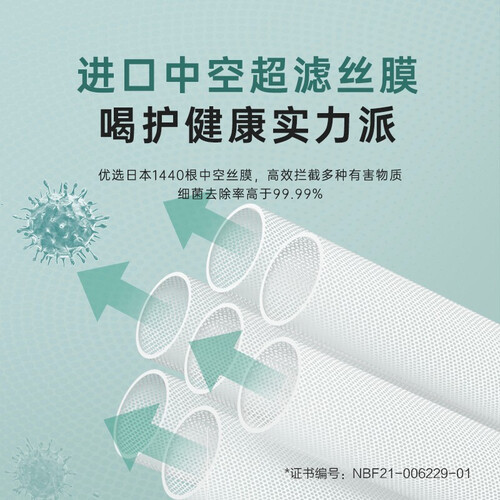 进口中空超滤丝膜,能轻松过滤水中杂质、有害物质等,出水更纯净。1500L滤水量,秒速满杯,畅快饮水不等待。