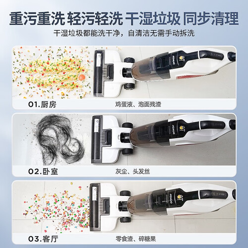 吸、拖、洗、一体设计,一次可完成地面的清洁工作,清洁好帮手。智能清扫智能净菌,能深度清洁霉菌,让地面一尘不染。
