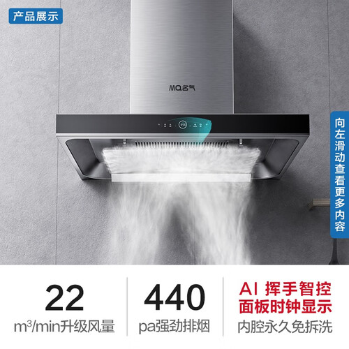搭载AI手感智控系统,不用接触面板轻松开启,带来智能化体验感。隐藏式油网设计,直视不见油污,视觉享受,油污不影响心情。