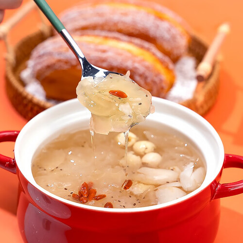 200g小罐体包装,添加奇亚籽,蕴含膳食纤维,开罐即食。银耳、莲子等多材料熬制,营养饱腹感强,深夜加班来一罐补精力。