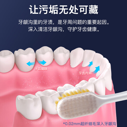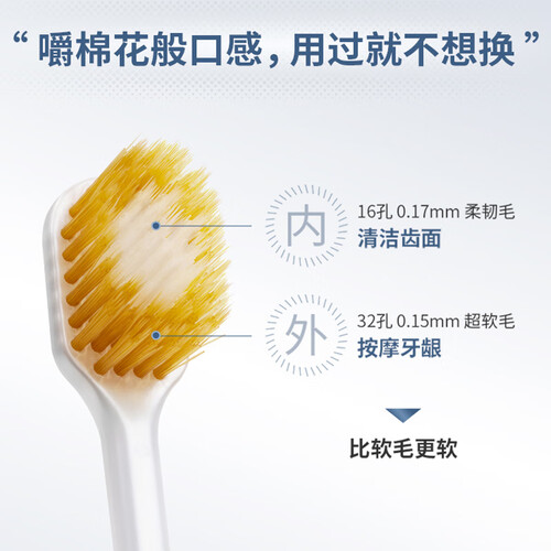 采用日本进口,品质安全有保证,为刷牙的安全保驾护航。具有高密绒感软毛,刷牙时更加轻柔,避免牙龈出血。
