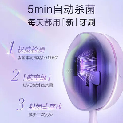 紫外线灯珠设计,杀灭病菌效率高,刷头洁净更健康;3种力度搭4种模式加持,不同净齿需求好满足。