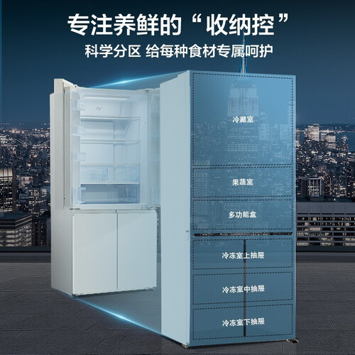 珍珠白色玻璃面板,光泽自然温和,可与各类家居格调轻松融合为一体。一键速冻功能,紧锁营养,带来鲜润口感。