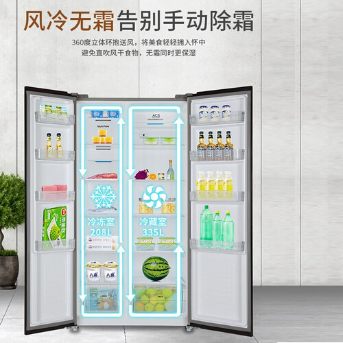 大空间层架,可直接储存整个西瓜,拿取更便捷。360°均匀送风,全域均衡制冷,风冷无霜,告别手动除霜带来的烦恼。