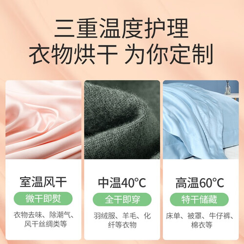 内筒正反旋转,轻松舒展衣物,避免造成缠绕,褶皱,大件衣物省心烘干。前后出风口双重过滤,收集毛发、绒絮,呵护衣物洁净。