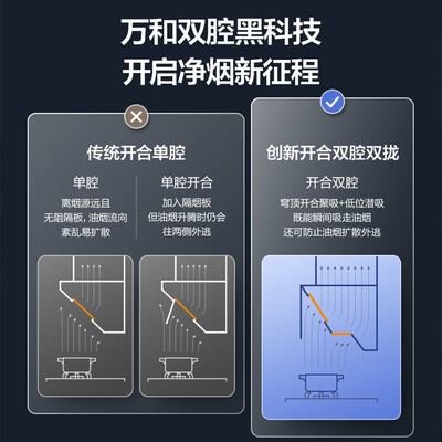 机身纵深仅395mm,安装方便,可齐平于多数橱柜,观感更佳。风压高达420pa,烹饪高峰期也可畅排不倒灌。