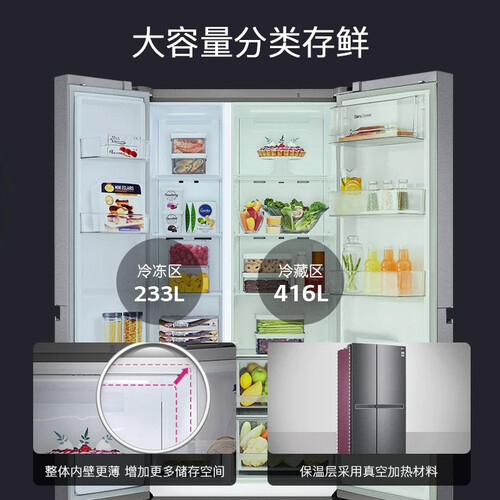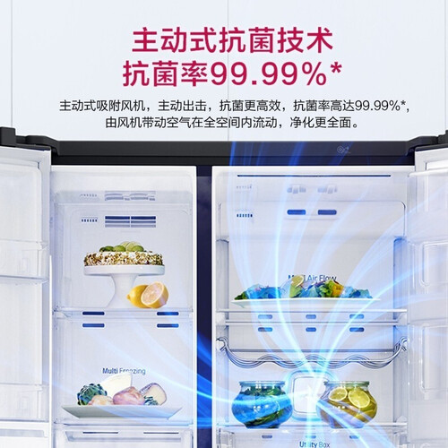 设有4层过滤系统,净化冰箱内部空气,避免污染食材,维持食物的健康和鲜美。还有急速冷冻系统,迅速冻住肉类,减少营养流失。