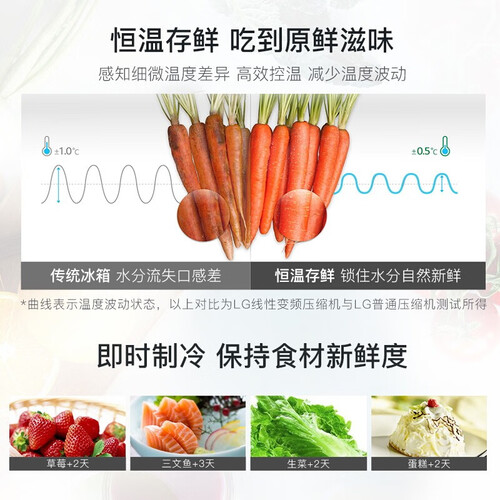 多维出风设计,送风效果更加均匀,温差不会太大。智能变频压缩机,长时间保持食材的鲜嫩,保鲜环境更健康。