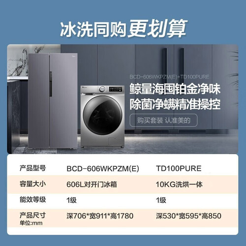 美的 铂金净味对开门冰箱