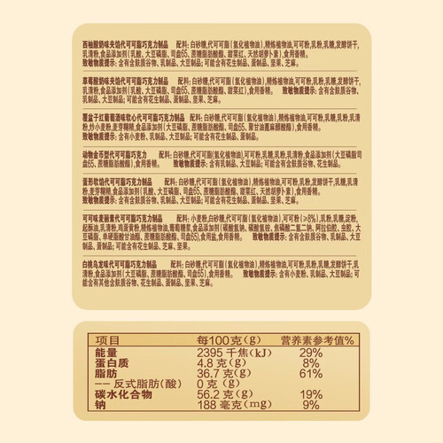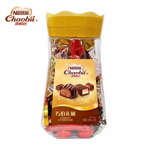 这款奇欧比巧伯礼桶,甄选进口奶粉和高品质可可粉,7种口味加量不加价。香浓的巧克力包裹不同风味的夹心,颗颗都是你的甜心。