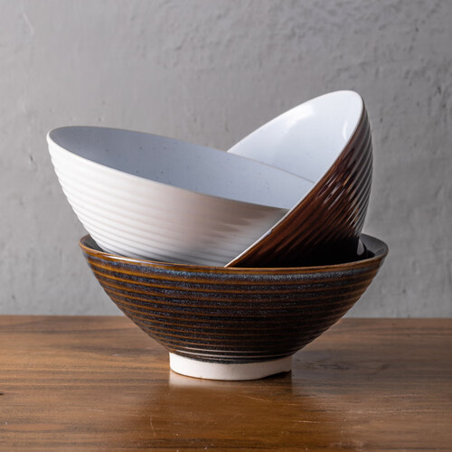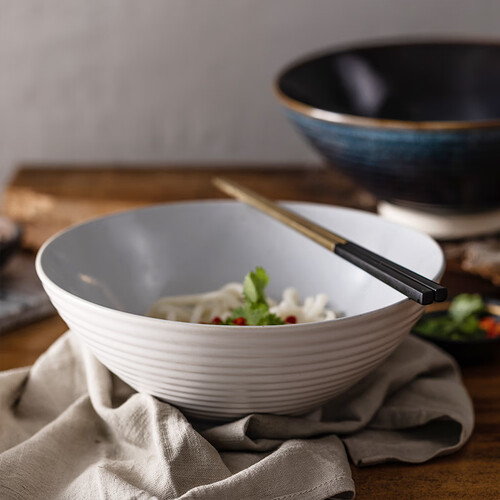 这款碗具采用了日式的设计风格,摒弃了华丽的色调,以斗笠的大碗型展现出别致质感,其开口较大也更易于清洁。
