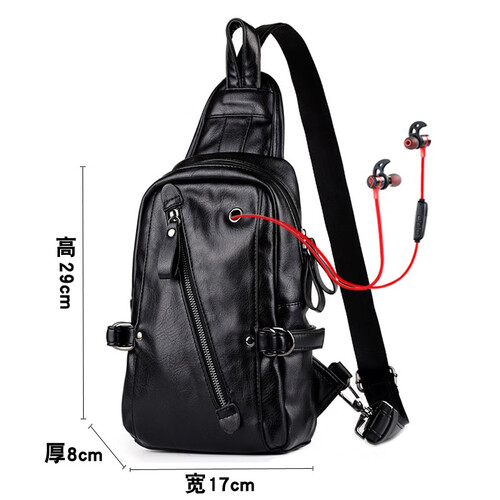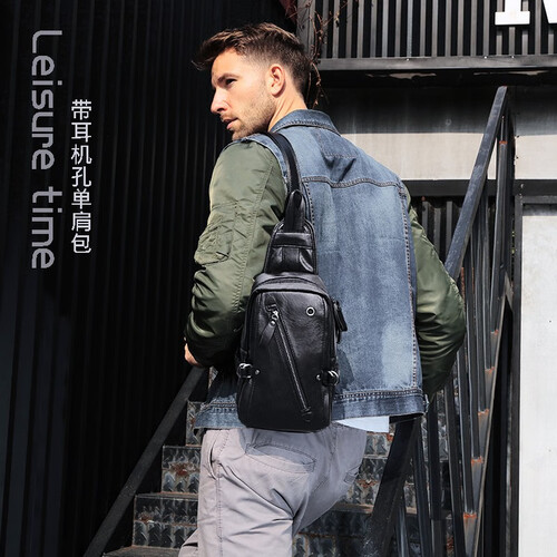 老人头拉链暗袋胸包