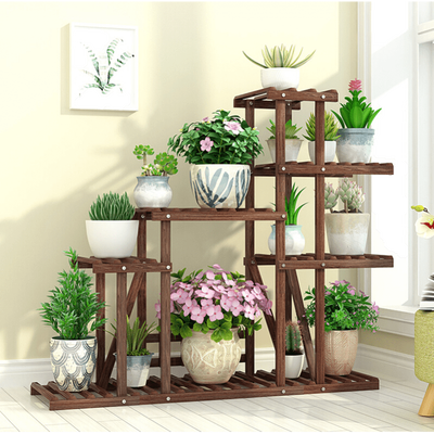 高低错落有致的花架设计,轻松容纳不同规格盆栽。高温碳化实木架构,光泽自然无油漆,质地坚硬耐腐蚀,经久耐用。