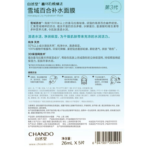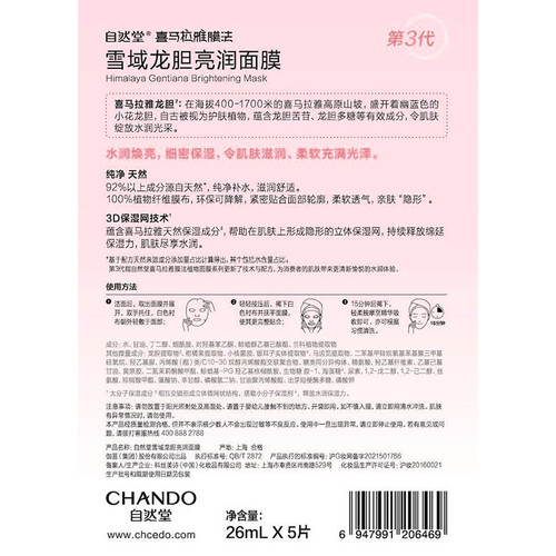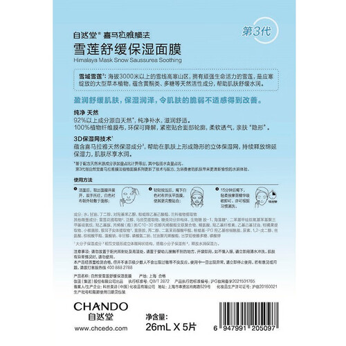 令肌肤透亮柔润的面膜,采用雪域植物精萃,给肌肤补水舒缓呵护,令毛孔更细致。还有隐形膜布,承载大容量精华液,触感更丝滑。