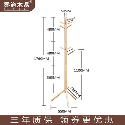 木马人 实木原色衣帽架