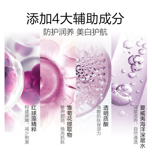 内含烟酰胺成分,有效淡化面部的可见斑,打造平滑透亮肌肤。玻尿酸精华的加持,令肌肤更加软嫩。