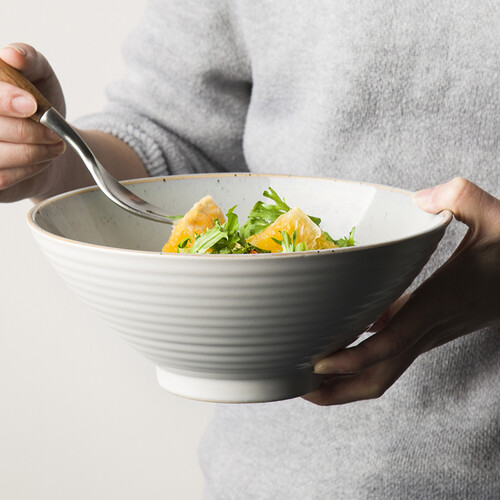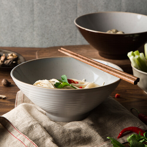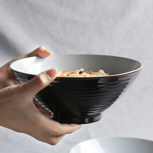 拉面碗内壁拥有芝麻釉装饰,犹如繁星点缀,美观你的视觉感。同时底部自带缺口设计,有效防止滑手,更易于端拿。
