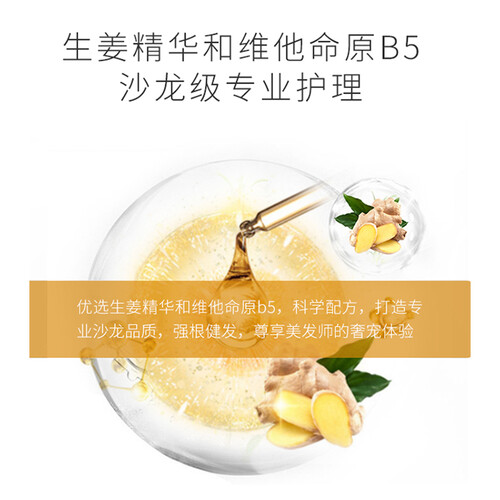 生姜提取精华,推动头皮气血运行,为毛发输送营养,蕴含维他命原B5,预防脱发,维护头皮健康,添加椰油,深层清洁,滋养保湿。