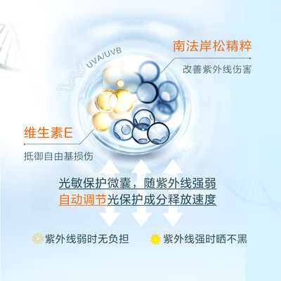 4维立体防护,富含生物类黄酮,预防皮肤光老化,能够抵御UVB防晒黑;清爽不紧绷,快速收干不拔干,舒适一整天。