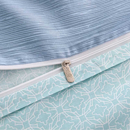 斜纹编织的面料具有细腻柔软的特点,触感十分舒适且立体感强。11点绑带设计,牢牢锁住被芯,不容易出现移位现象。